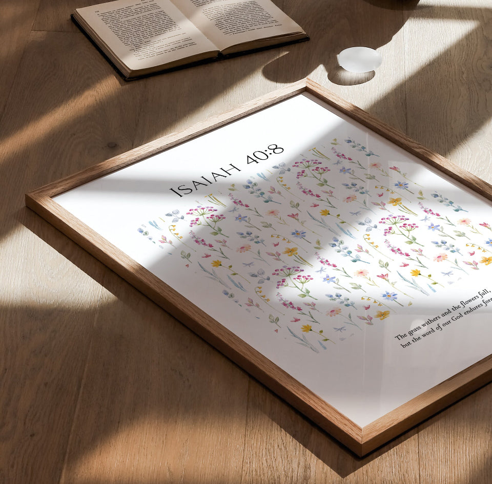 Criamos quadros com versículos, histórias e símbolos cristãos para que a Palavra esteja sempre diante dos olhos e do coração.